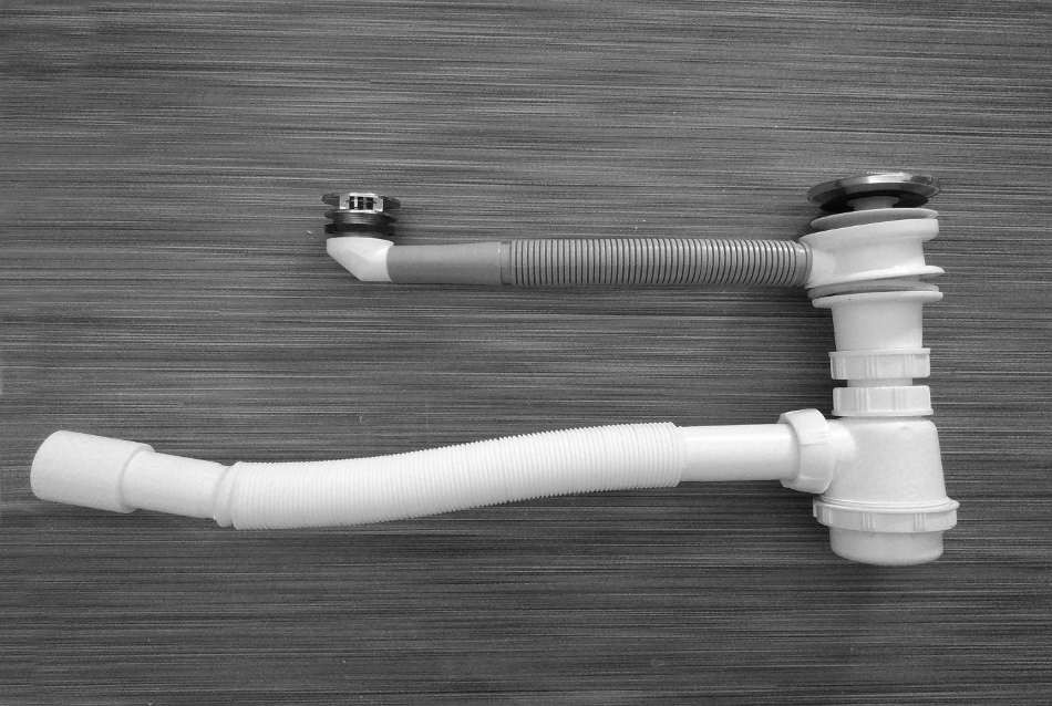 - Патрубок для соединения сифона с канализацией – он может быть 2 видов: гофрированный и жесткий. Первый удобнее подключать, однако второй – более надежный. Помимо этого, преимуществом гофрированного патрубка является длина, которую можно отрегулировать согласно вашим потребностям.
