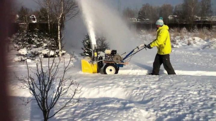 - чтобы осуществлять выбрасывание снега, который собран, в технике имеется прочный стальной жёлоб с углом 190 градусов;