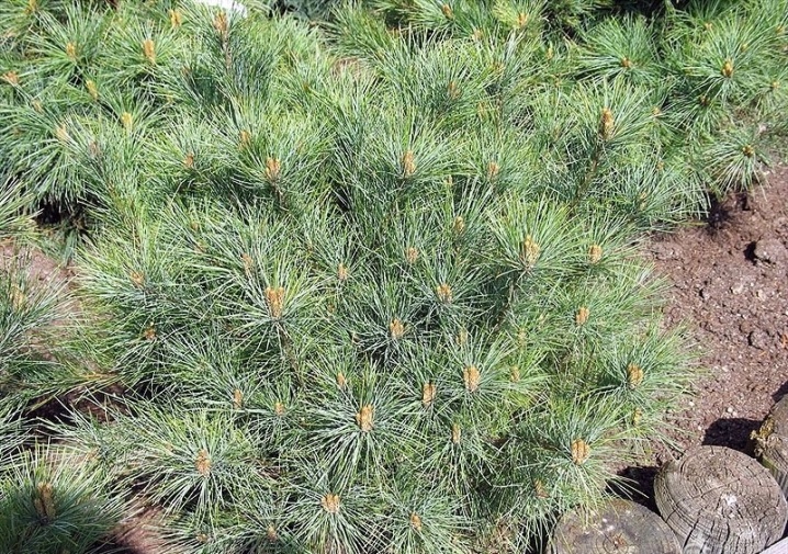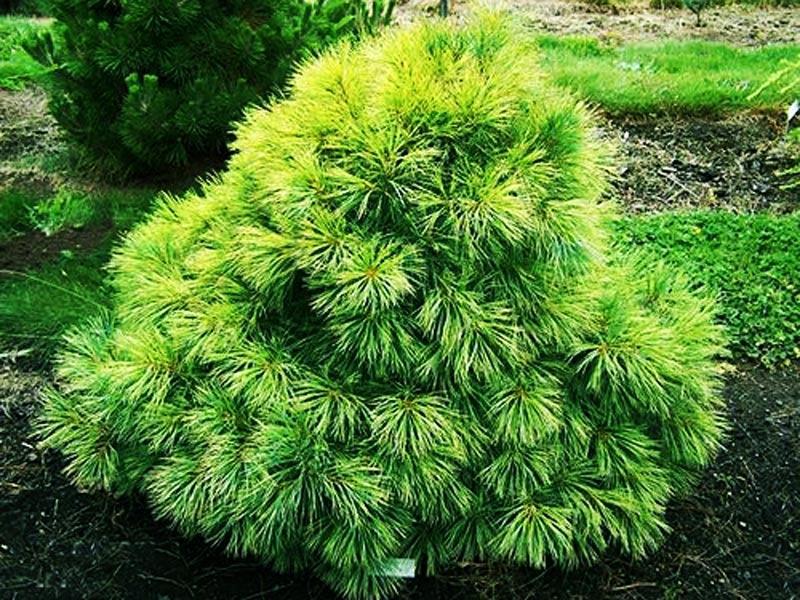 Очень популярный сорт белой сосны. Это дерево не вырастает выше 4 метров. Популярность данного сорта обусловлена неприхотливостью растения: оно может расти на любой почве, выдерживает полутень и открытое солнце, не боится сильных заморозков, ветров, снегозаносов.