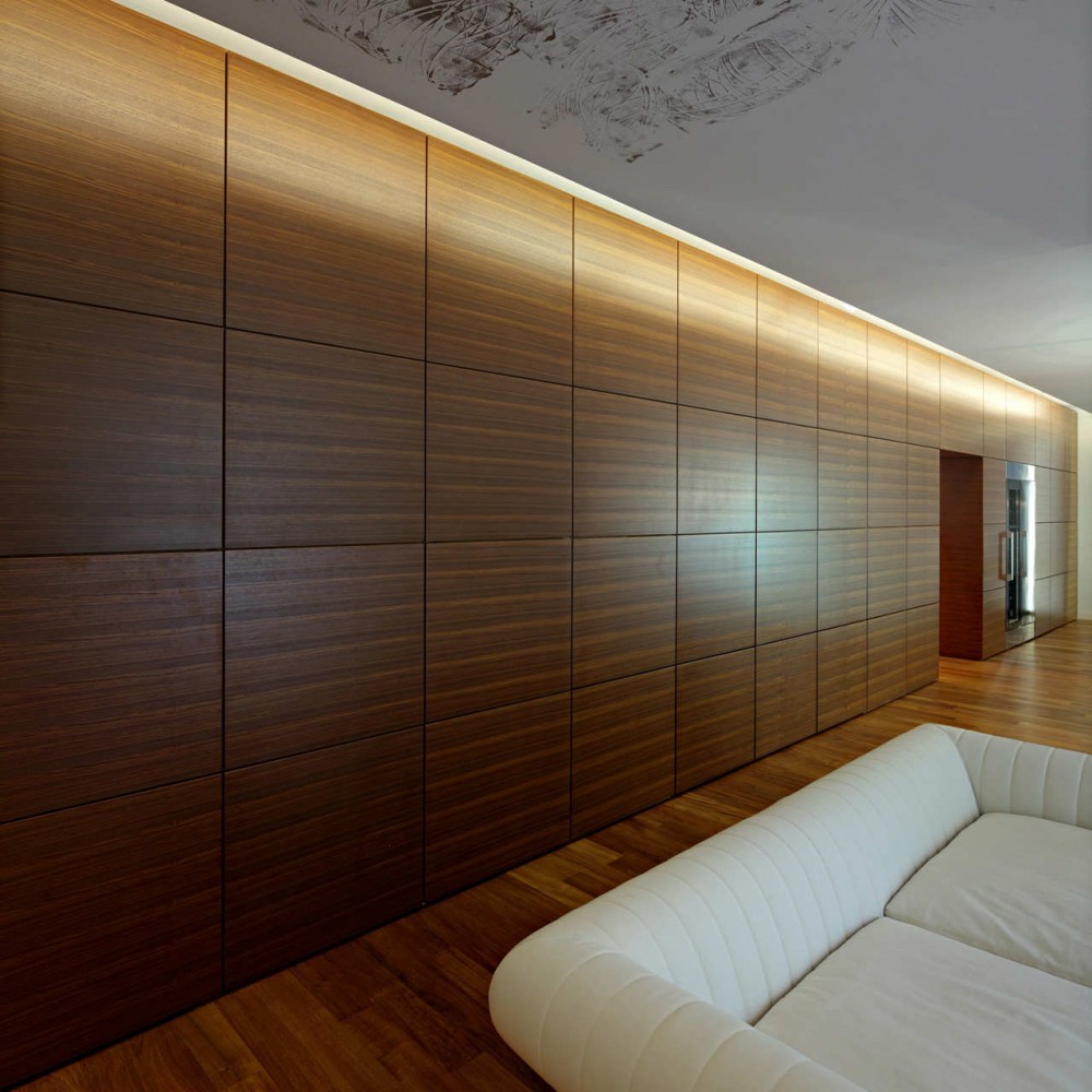 Для того чтобы получить модный и оригинальный интерьер с применением шпонированных панелей, используют следующие приемы: