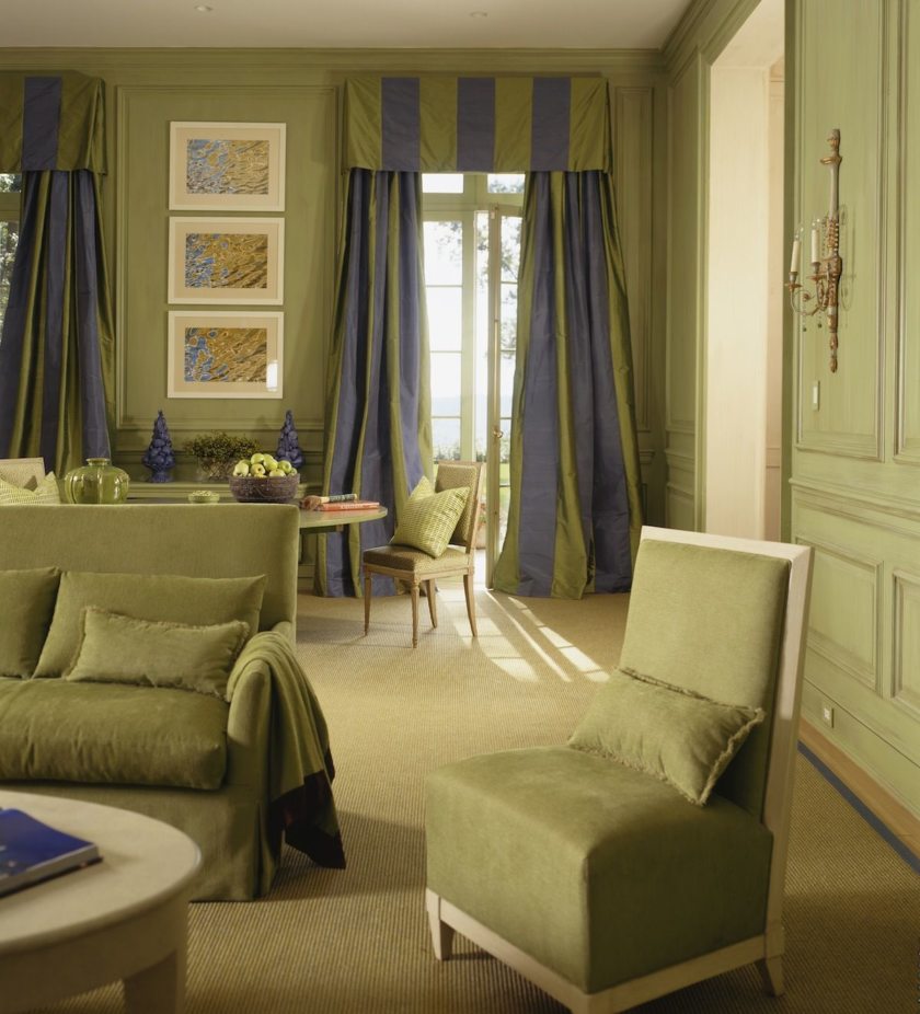 Основные цвета его – белый, пастельные оттенки желтого, зеленого, голубого, розового. Допускается разумная контрастность (белый с красным, персиковым, зеленым или даже бордо), без вычурности. А вот сочетания близких тонов приветствуются (горчичный и песочный, яблочный и оливковый, бежевый и табачный).