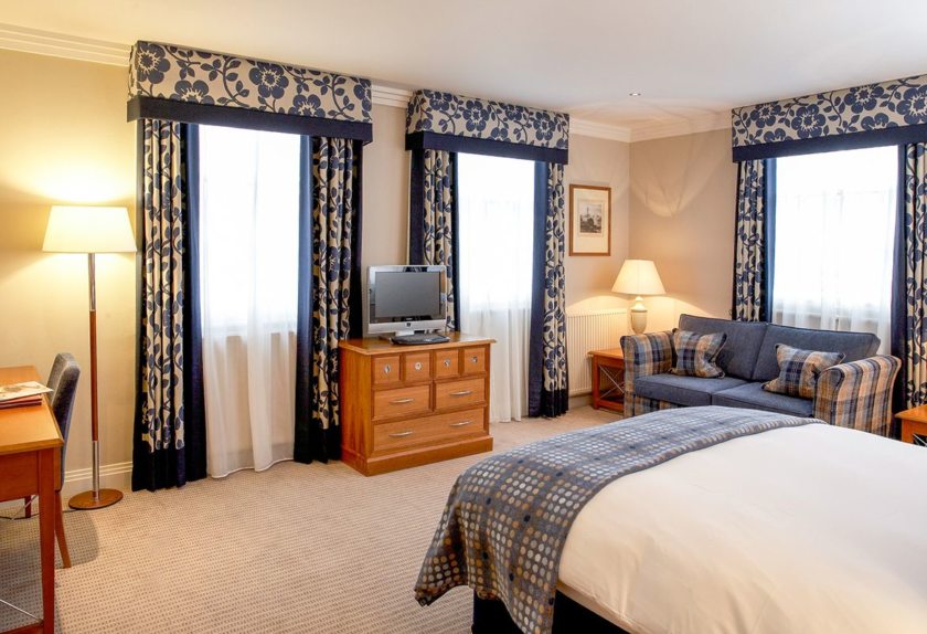 - Для оформленной в классическом стиле гостиной в частном доме подойдут простые геометрические формы, нанесенные на материал.
