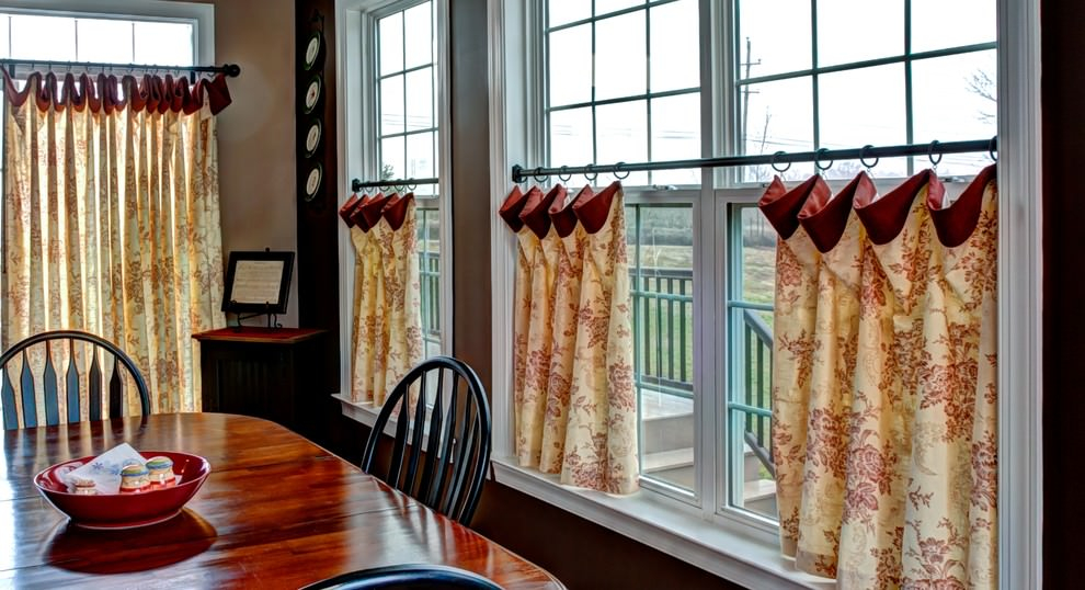 Оформление окна в стиле кафе может органично смотреться и в классическом интерьере, оставаясь при этом традиционно деревенским фасоном