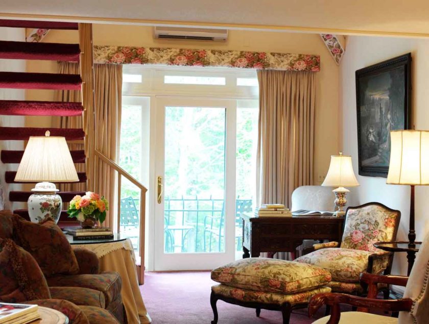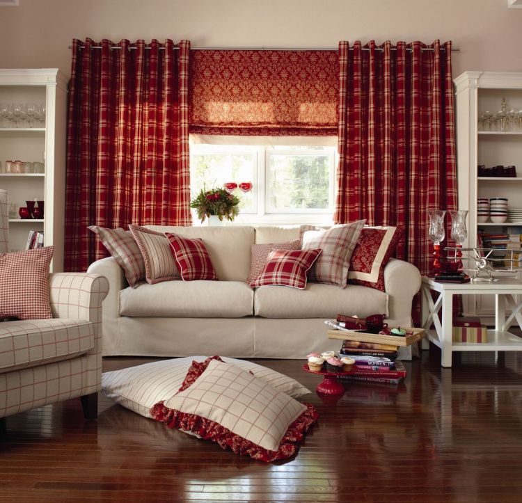 Шторы кантри в интерьере гостиной комнаты или спальни могут быть следующих видов: