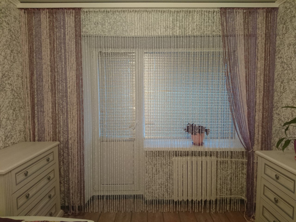 Данные шторы пришли к нам с самой деревни, когда ранее натягивали простую веревку и на ней вешали занавески, чтобы легко можно было сдвинуть одну в стороны и открыть обзор.