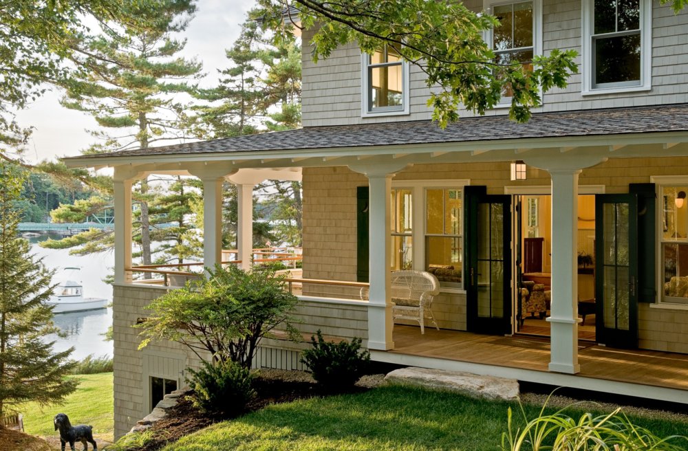 Для выполнения указанных задач, крыльцо обязательно должно иметь крышу. Человек на крыльце чувствует себя комфортнее, если защищен еще и от ветра.