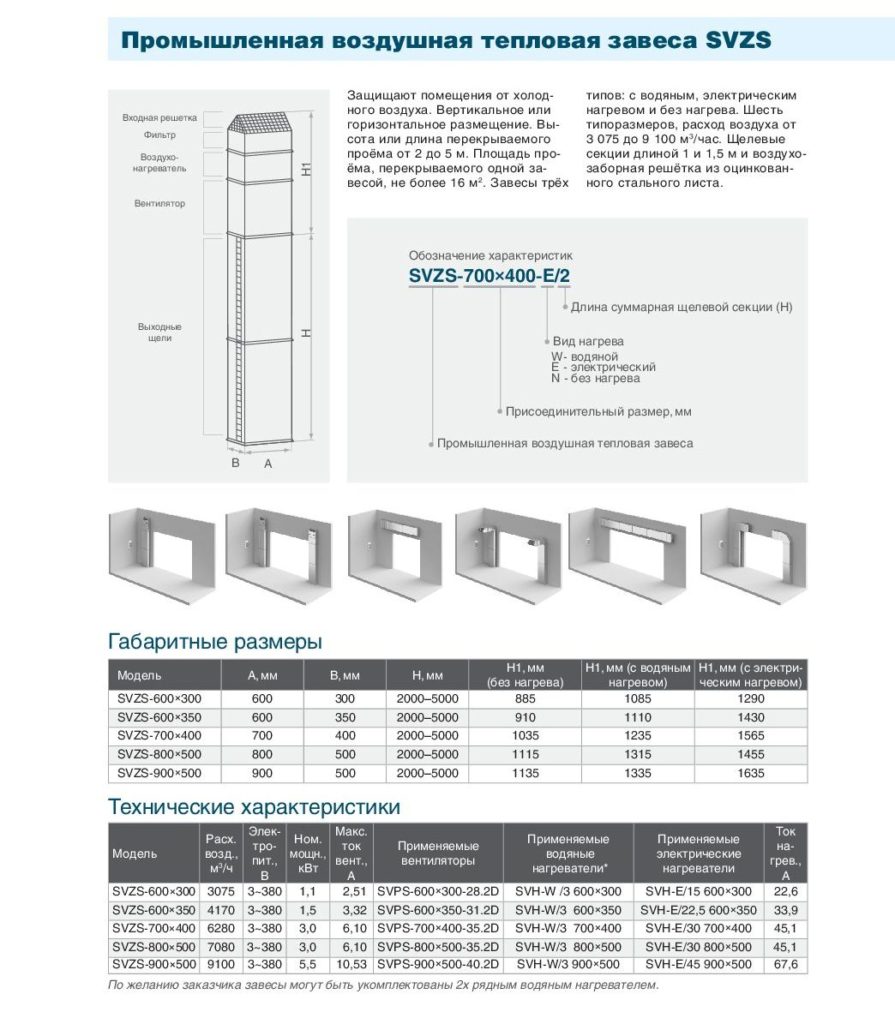 Для удобства покупателя производитель прописывает в технической документации тепловой завесы, для каких по размеру проемов она предназначена.