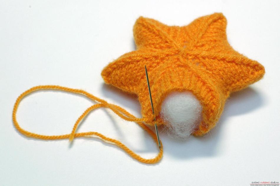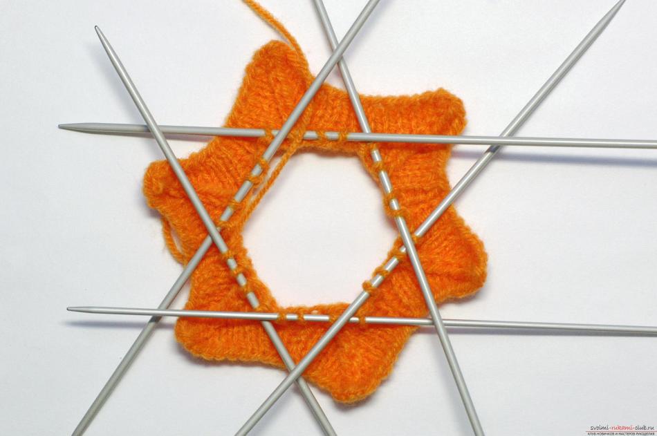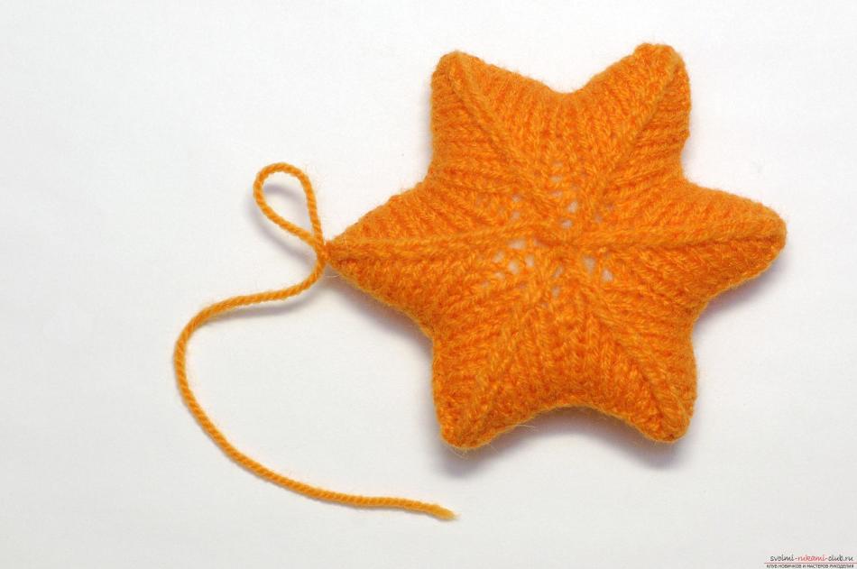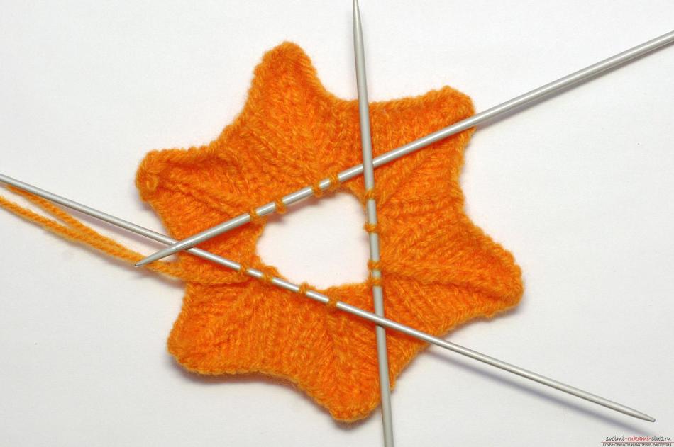 Отличная идея для подарка — подушка-звезда. Такая подушка вяжется платочной вязкой на пяти чулочных спицах. Рассмотрим процесс вязания звезды на примере миниатюрной подушки. Подушку «полноразмерную» вяжите из более толстой пряжи.