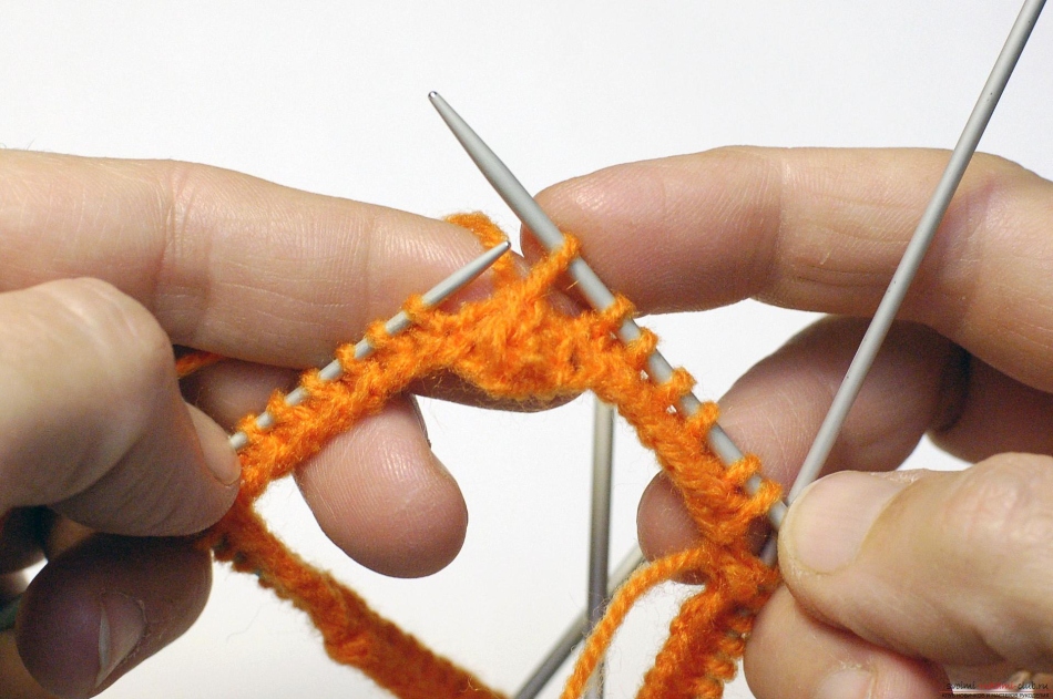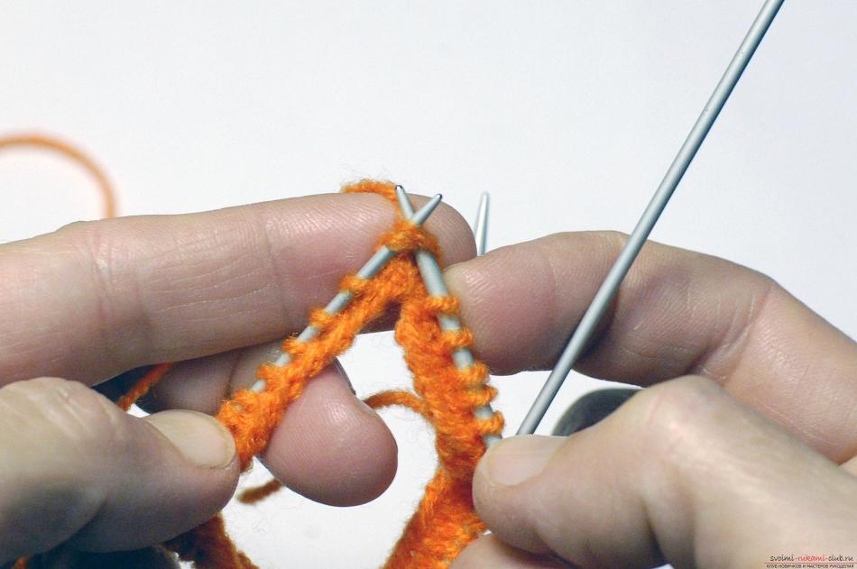 Далее 4-ю петлю следует протянуть через 3, 2 и 1-ю и сбросить провязанные петли с правой спицы.