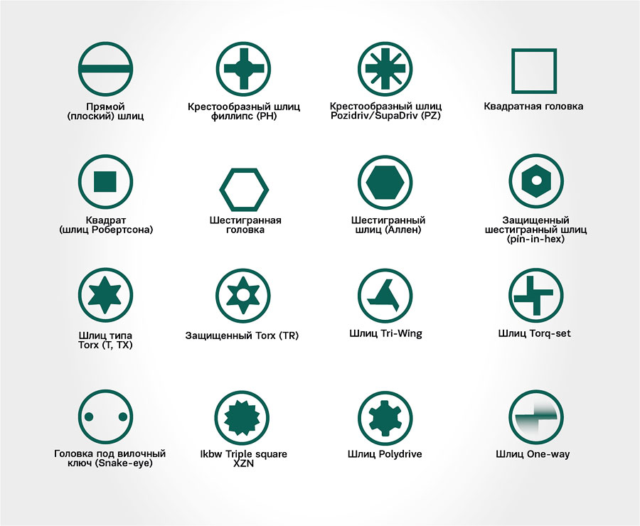При применении универсальных шурупов используются или шуруповерты со сменными битами или наборы отверток со сменными наконечниками.