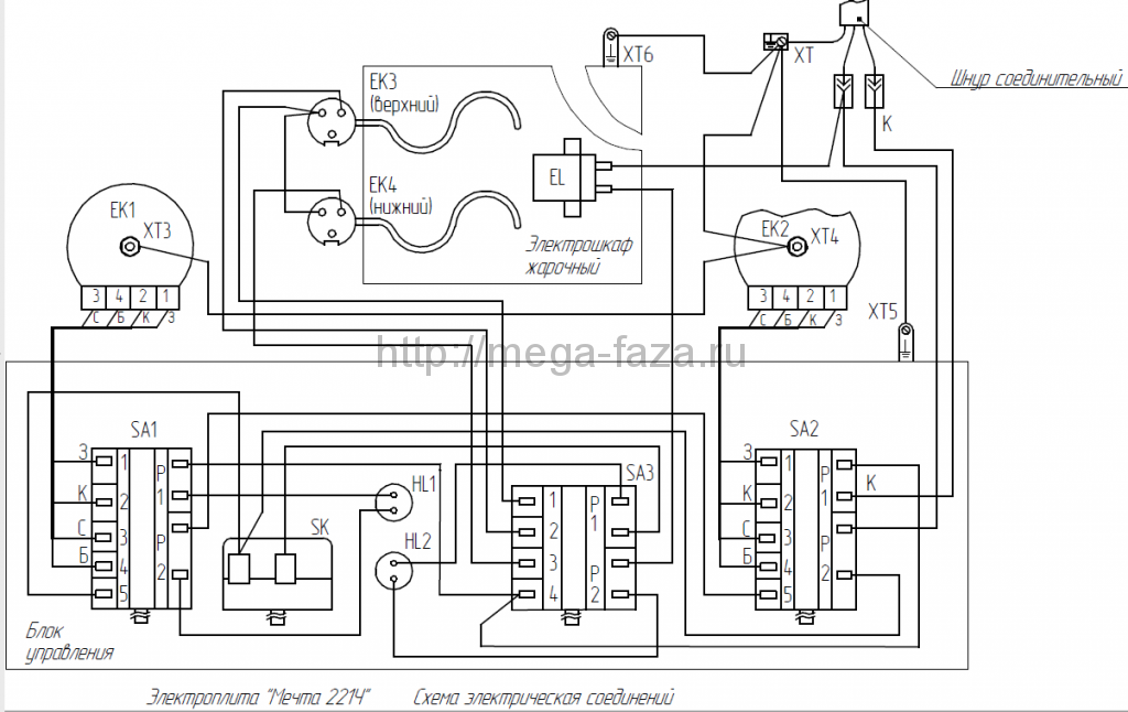 Монтажная схема электрических соединений электрической плиты Мечта 8