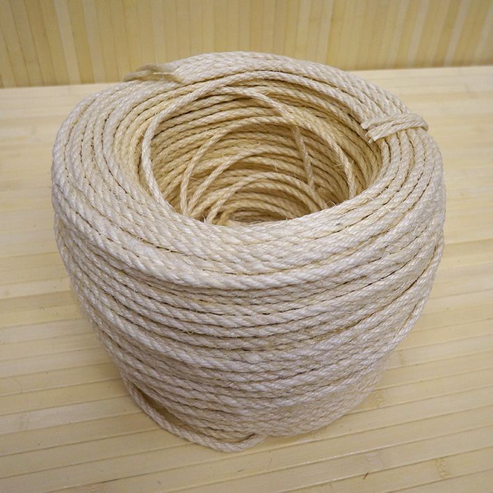 - доску, которая служит основанием всей конструкции, необходимо плотно обтянуть жгутом из сизаля. Так вы упростите восхождение вашего котика по лестнице вверх. Об такую поверхность кот также сможет точить когти.